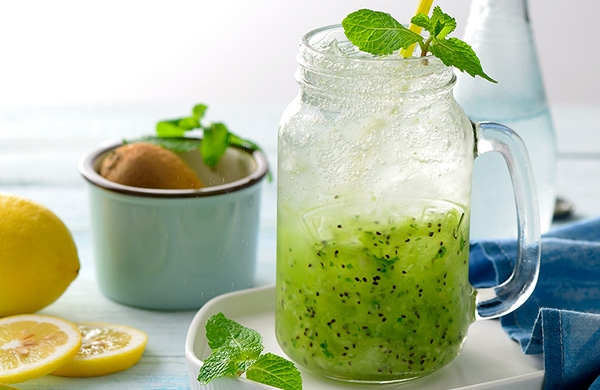 3. ใส่กีวีลงไปในแก้วแล้วตามด้วยน้ำแข็ง