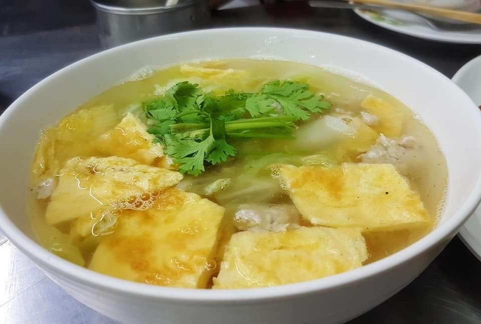 6.ใส่เต้าหู้ไข่และต้นหอมลงไป ต้มอีกสักพักเป็นอันเสร็จ"