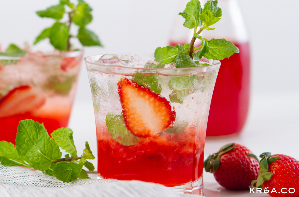 1. ตักแยมสตอเบอรี่ 2 ช้อนโต๊ะใส่ถ้วย ตามด้วยน้ำเปล่า 1 ช้อนโต๊ะ คนผสมให้เข้ากัน นำเข้าไมโครเวฟ 1 วินาทีจนแยมละลาย