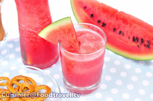1. คั้นน้ำแตงโมออกมาให้หมด